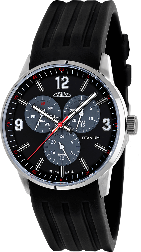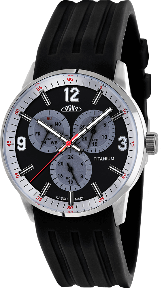 Sportovní hodinky vyrobené z broušeného antialergického titanu, následně upravené do matného vzhledu. Do pouzdra je vsazen quartzový strojek kalibr Seiko TMI VH68. Hodinky mají dno z leštěného titanu se stručným popisem modelu. Voděodolnost 10 ATM zaručuje odolnost proti vodě při běžném užívání. Pod odolným minerálním sklíčkem je umístěn propracovaný  číselník s funkcemi datumu, dne a 24 hodinovým ukazatelem času. Hlavní hodinové ručky jsou pokryty luminiscenční vrstvou stejně jako reliéfní indexy pro lepší odečet času za snížené viditelnosti. Hodinky jsou opatřeny kvalitním titanovým řemínkem. Hodinky jsou dodány v originálním balení.
