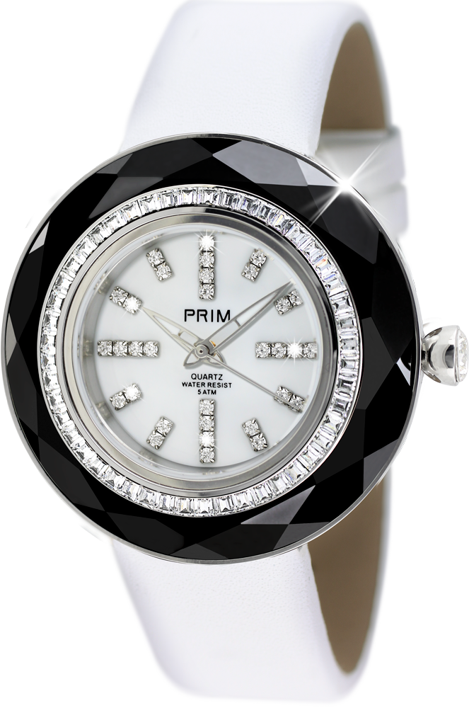 Hodinky z kolekce PRIM Preciosa Onyx jsou vyrobeny z ušlechtilé nerezové ocelí 316L, která je vyleštěna do vysokého lesku. Prstencové okruží je vyrobené z ručně opracovaného přírodního Onyxu. Na okruží najdete ručně broušené fasety v geometrickém tvaru s krásnými odlesky. Krásu faset dotváří struktura přírodního Onyxu. Každý model hodinek je také ozdoben prstencovým okružím s krystaly Preciosa® zasazeném v nerezovém kroužku. Použitý strojek Ronda pracuje pod bílým číselníkem s Indexy zdobenými zirkony Preciosa. (krystaly z kubické zirkonie produkce PRECIOSY.) Jedinečné je také zapracování krystalů kus po kusu. Nádherný brus krystalů z Preciosy můžete obdivovat i na netradičním tvaru korunky podtrhující originalitu hodinek. Hodinky drží na ruce kožený řemínek s klasickou sponou z nerezové ocelí 316L. Hodinky dodáváme v luxusní krabičce.
