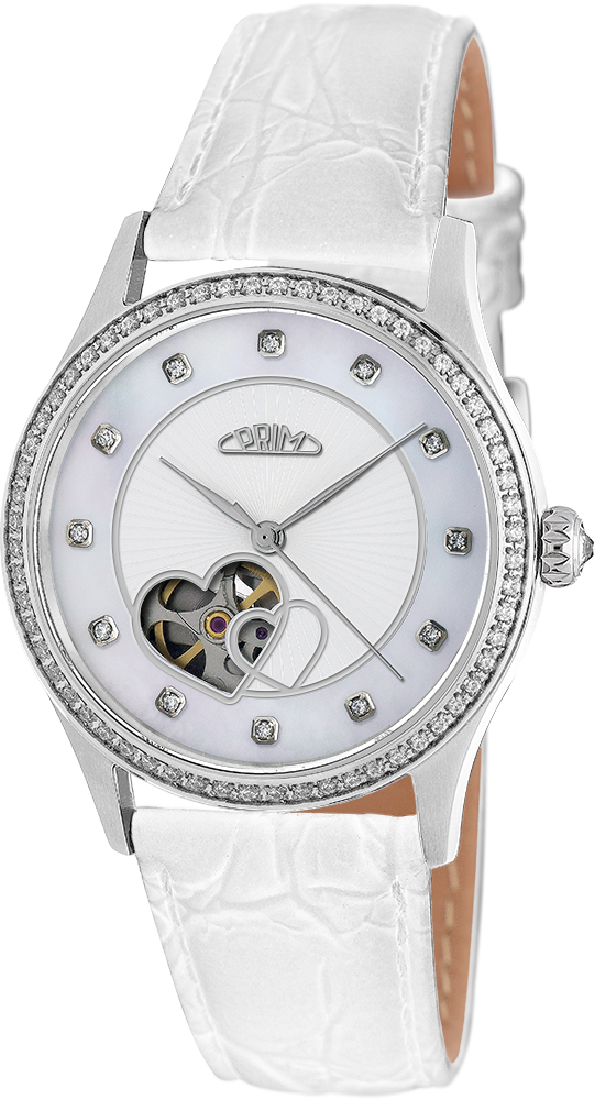 Elegantní dámský automat vyroben z leštěné ušlechtilé nerezové oceli 316 L. Pro milovnice diamantů jsme vyrobili 5 kusů pouzdra s okružím s 60 kusy diamantů (diamanty jsou uchyceny CNC kropnou). Do pouzdra je vsazen strojek automat 82S0 s možností natáhnutí ocelovou korunkou s kamenem. Hodinky jsou uzavřeny na závit dnem z ušlechtilé nerezové oceli 316L s průzorem na pracující strojek. Voděodolnost 5 ATM zaručuje odolnost proti vlhku při běžném použití. Pod safírovým sklíčkem se nachází elegantní reliéfní číselník doplněný perleťovým vzorem a indexy s 12 pravými diamanty . Číselník má také krásný průzor ve tvaru dvojího srdce. Celkový jemný dojem hodinek podtrhuje elegantní ručičky. Model je dodáván s kvalitním prošitým koženým řemínkem s klasickou sponou. Tyto hodinky jsou dodávány v krabičce se záručním listem, návodem a certifikátem pravosti diamantů. Limitovaná série 5 kusů.