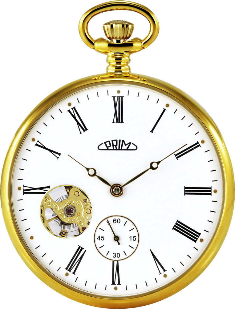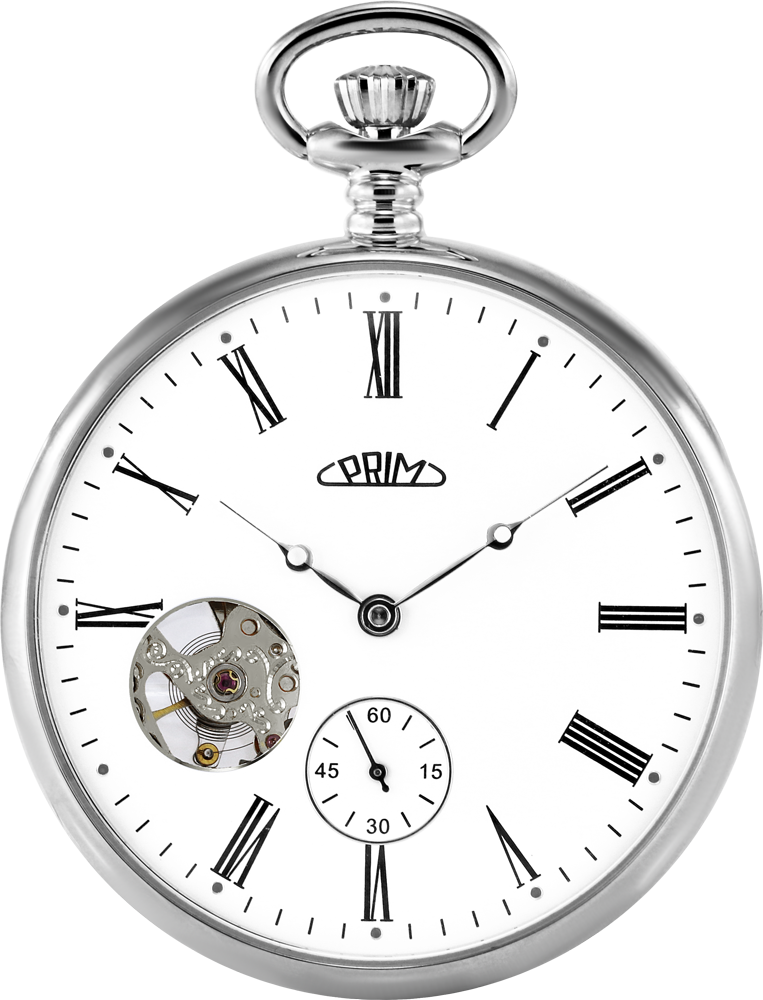 Mechanické kapesní hodinky PRIM s ručním nátahem, mimostřednou sekundovou ručkou a průzorem na strojek. Elegantní a čistý číselník s římskými indexy doplňen jemnou hodinovou a minutovou ručkou. Hodinky jsou vhodné jako dárek pro stylové může, kteří hledají zajímavý módní doplněk. Tyto hodinky Vám doporučujeme individualizovat na ciferník či zadní stranu víčka.