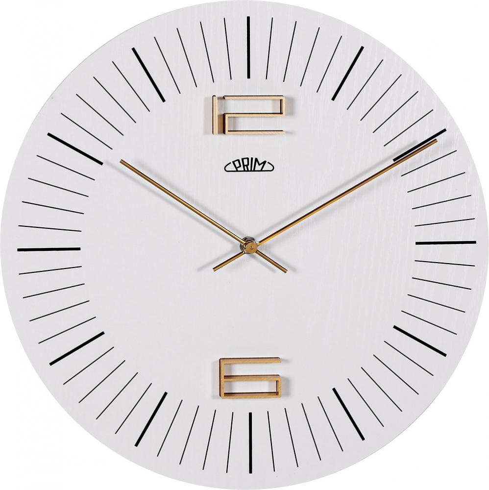 Dřevěné nástěnné hodiny PRIM Wood Thin mají 3D číslice 12 a 6 z kovu. Působí velice čistým, elegantním dojmem.