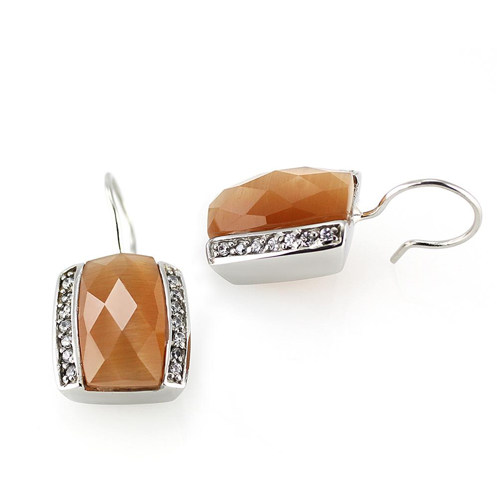 Elegantní dámské náušnice s kočičím okem a zirkony Swarovski. Tento model lze koupit v nádherné sadě. Náušnice jsou vyrobeny z antialergické chirurgické oceli.