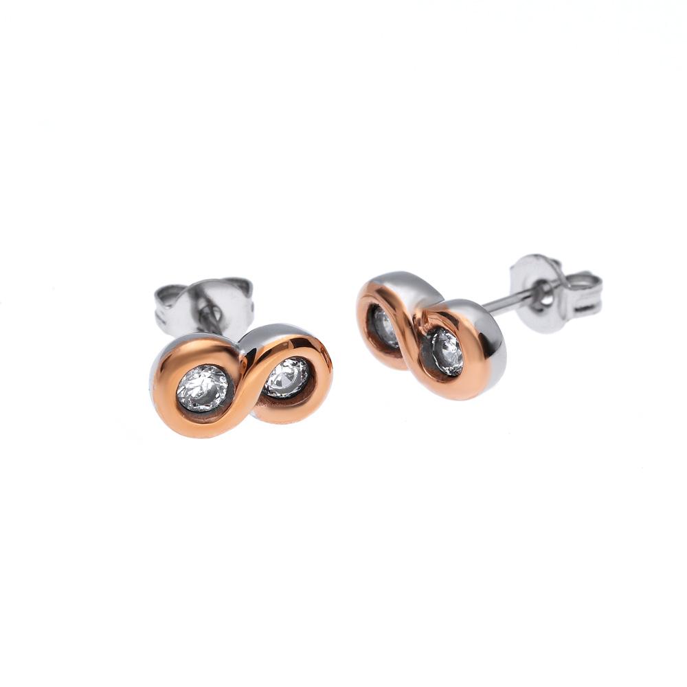Infinity náušnice, které svým jemným vzhledem zaujmou při každé situaci. Tento model lze koupit v krásné sadě. Náušnice jsou vyrobeny z antialergické chirurgické oceli.