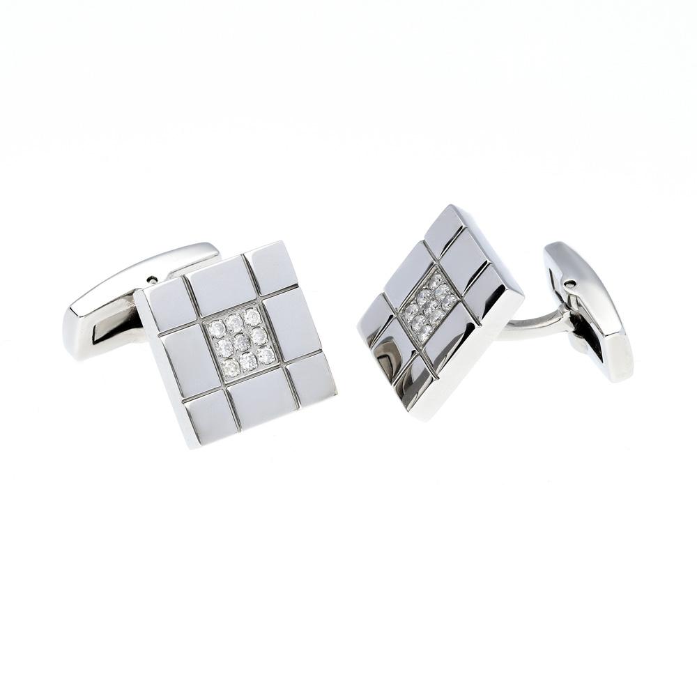 Elegantní pánský manžetový knoflíček ve tvaru čtverce s diamanty. Tento jemný a designový kousek ocení každý stylový muž.