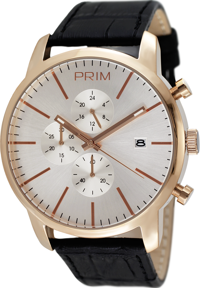 Společenské multifunkční hodinky s chronografem vyrobené z leštěné ušlechtilé nerezové oceli 316 L. Pouzdro je následně upraveno technologií IPGR, tato otěru odolná úprava dává pouzdru odstín růžového zlacení. Do pouzdra je vsazen quartzový strojek s chronografem kalibr JS 15. Hodinky mají dno z ušlechtilé nerezové oceli a vodotěsnost 5 ATM zaručuje odolnost proti vodě při běžném užívání. Pod částečně konvexním minerálním sklíčkem je paprskovitě zdobený číselník s vystouplými indexy a čítači chronografu. Na pozici 12 hodin je umístěn čítač ve 24 hodinovém formátu času, datum je umístěn v okénku na pozici 3 hodiny. Pro měření chronografu slouží na pozici 9 hodin čítač minut a na pozici 6 hodin čítač sekund. Chronograf měří čas do 29 minut 59 vteřin s přesností na 1 vteřinu. Sekundová ručka hlavního času je centrálně umístěna spolu s hlavními. Hodinky jsou opatřeny kvalitním koženým řemínkem s klasickou sponou. Tyto hodinky jsou dodávané v luxusní krabičce se záručním listem a návodem.