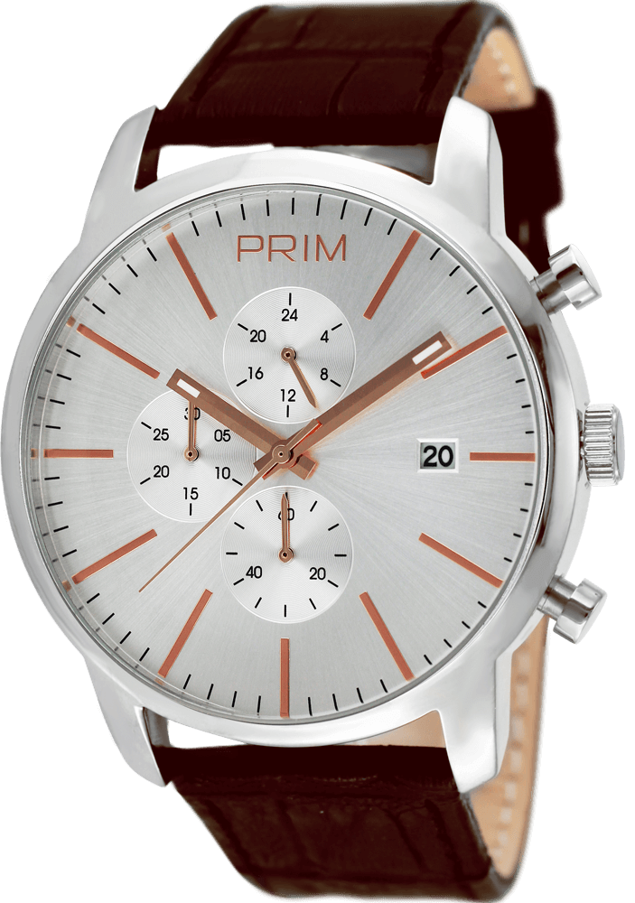 Společenské multifunkční hodinky s chronografem vyrobené z leštěné ušlechtilé nerezové oceli 316 L. Do pouzdra je vsazen quartzový strojek s chronografem kalibr JS 15. Hodinky mají dno z ušlechtilé nerezové oceli a vodotěsnost 5 ATM zaručuje odolnost proti vodě při běžném užívání. Pod částečně konvexním minerálním sklíčkem je paprskovitě zdobený číselník s vystouplými indexy a čítači chronografu. Na pozici 12 hodin je umístěn čítač ve 24 hodinovém formátu času, datum je umístěn v okénku na pozici 3 hodiny. Pro měření chronografu slouží na pozici 9 hodin čítač minut a na pozici 6 hodin čítač sekund. Chronograf měří čas do 29 minut 59 vteřin s přesností na 1 vteřinu. Sekundová ručka hlavního času je centrálně umístěna spolu s hlavními. Hodinky jsou opatřeny kvalitním koženým řemínkem s klasickou sponou. Tyto hodinky jsou dodávané v luxusní krabičce se záručním listem a návodem.