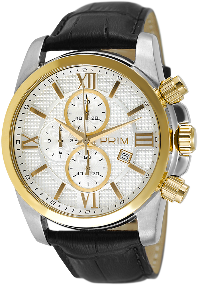 Pánské multifunkční hodinky s chronografem vyrobené z leštěné ušlechtilé nerezové oceli 316 L. Zlacené části pouzdra jsou upraveny metodou IPG. Do pouzdra je vsazen quartzový strojek s chronografem kalibr OS 10 s měřením na 1 sekundu s délkou měření 11 hod. 59 min, 59 s. Hodinky mají dno uzavřené na závit z ušlechtilé nerezové oceli a vodotěsnost 5 ATM zaručuje odolnost proti vodě při běžném užívání. Pod tvrzeným minerálním sklíčkem je reliéfní číselník s indexy. Reliéfní číselník má také okénko na pozici 4 hodiny, ve kterém je umístěn datum. Pro měření chronografu je na pozici 9 hodin čítač hodin a na pozici 12 hod. měří ručka minuty. Sekundová ručka chronografu je centrálně umístěna spolu s hlavními. Vteřinová ručka hlavního času má vlastní čítač na pozici 6 hodin. Prošitý kožený řemínek zakončuje klasická spona na trn z ušlechtilé nerezové oceli. Tyto hodinky jsou dodávány v luxusní krabičce se záručním listem a návodem.