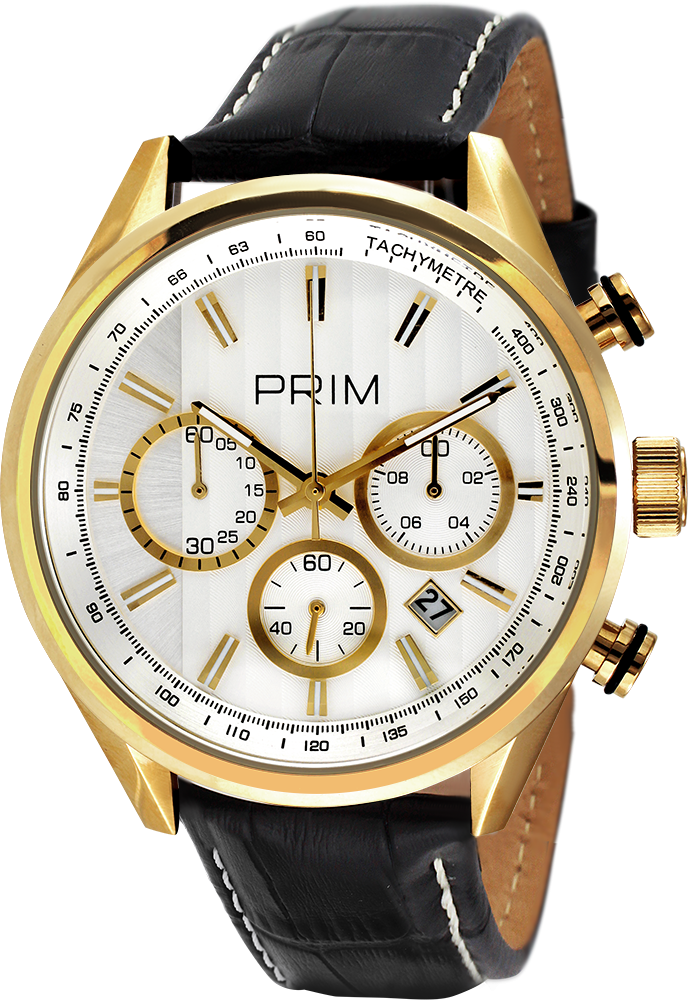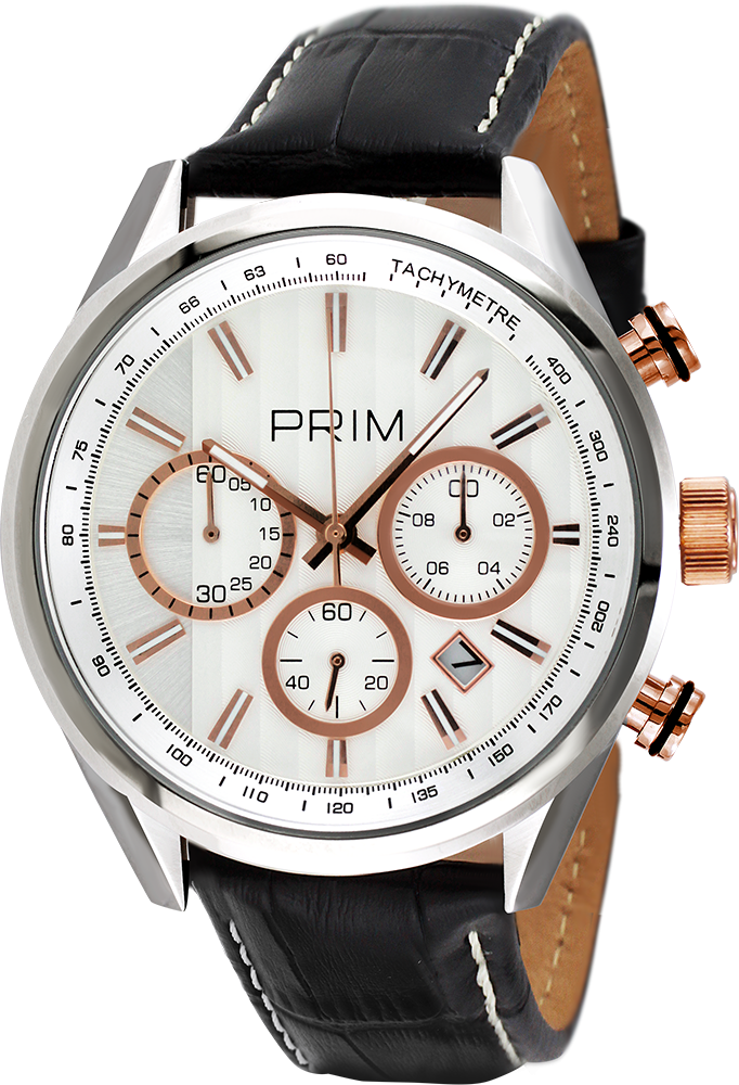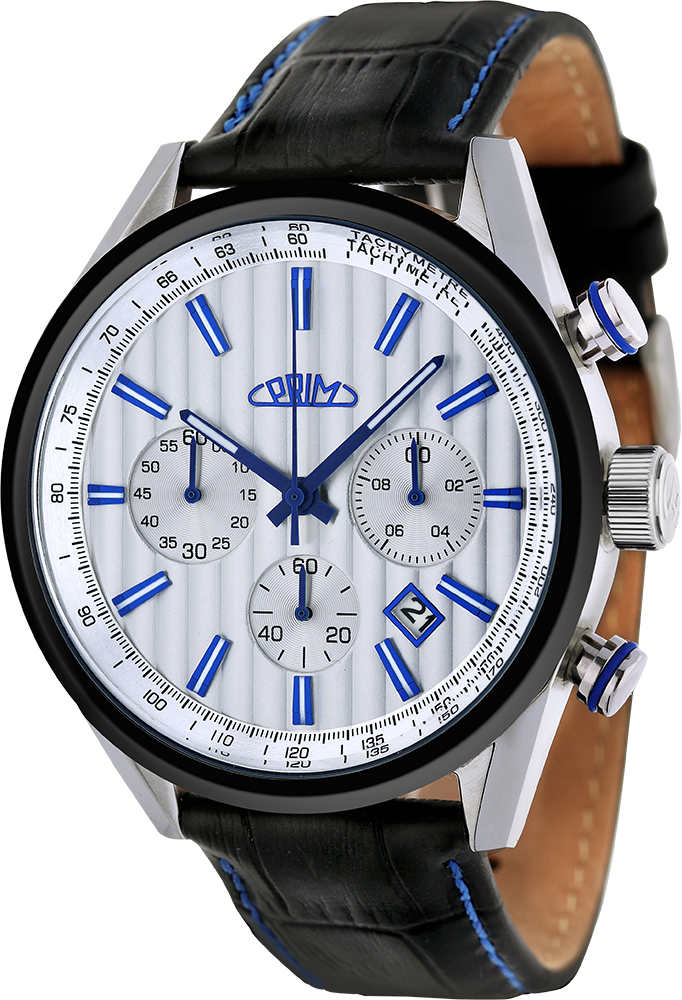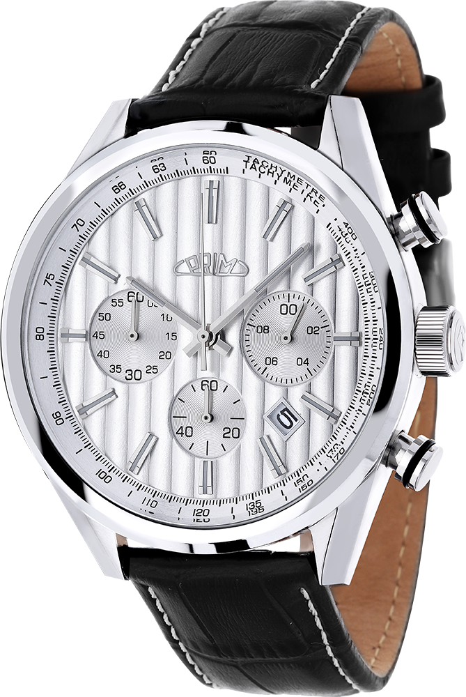 Elegantní multifunkční hodinky s chronografem vyrobené v kombinaci broušené a leštěné ušlechtilé nerezové oceli 316 L. Uvnitř pracuje quartzový strojek s chronografem kalibr 6S20. S přesností měření na 1/20 vteřiny s délkou měření 59 min 59 vteřin. Vodotěsnost 5 ATM zaručuje odolnost proti vlhkosti při běžném použití. Použili jsme propracovaný moderní ciferník s ženevskými pruhy. Čas ukazují ručky s luminiscenční vrstvou, kterou jsou opatřeny i reliéfní indexy, usnadňující odpočet času za snížených světelných podmínek. Specialitou je také její chod nepohybuje se po jedné vteřině jak je tomu u běžných quartzových strojků, její krok je 1/4 vteřiny, takže vytváří dojem jako je tomu u mechanických hodinek. Hodinky jsou opatřeny kvalitním koženým řemínkem se vzorem krokodýl s kontrastním prošitím.