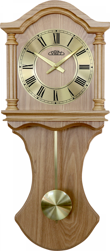 Dřevěné nástěnné hodiny PRIM s historickým nádechem.