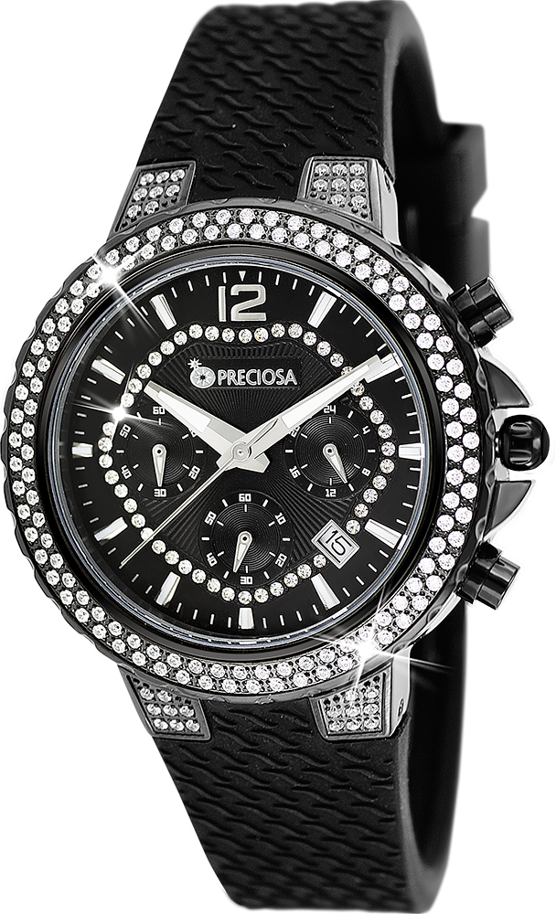 Stylové dámské chronografy představují vrcholný styl modelů Preciosa a kromě nápaditého vzhledu jsou kombinací špičkových materiálů a moderního vzorovaného řemínku, který je proveden v antialergenním silikonu.