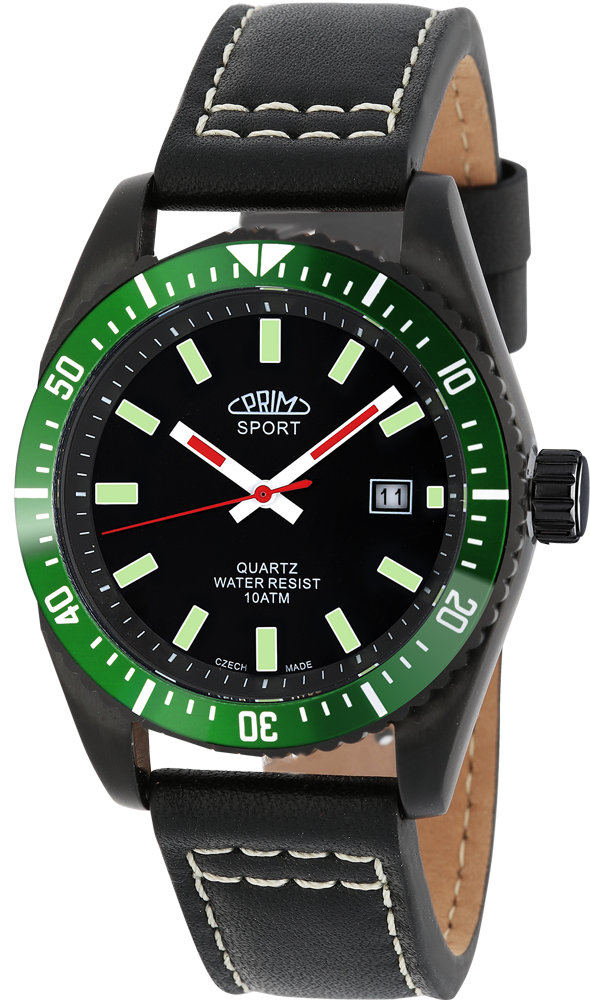 Sportovní hodinky s quartzovým strojkem. Pouzdro je vyrobeno z ušlechtilé nerezové oceli 316L. Ocel je dále upravena kartáčováním a leštěním. Do pouzdra je vsazen kalibr Miyota 2115. Tento model sportovních hodinek je označen voděodolností 10 ATM. Přes tvrzené minerální sklo je vidět originální číselník inspirovaný modelem PRIM SPORT z roku 1968. Pro maximální kontrast ciferníku jsou použity luminiscenční tištěné indexy s plastickým vzhledem. Hranaté datumové okénko zůstalo na pozici 3 hodin, tak jak bývalo dříve zvykem. Minutová stupnice ciferníku je natištěná na zkoseném vymezovacím kroužku mezi sklem a číselníkem. Sportovní vzhled doplňuje otočná luneta se stupnicí minut a s jednosměrnou aretací. Hodinky jsou opatřeny kvalitním koženým řemínkem, který dodává hodinkám originální vzhled.