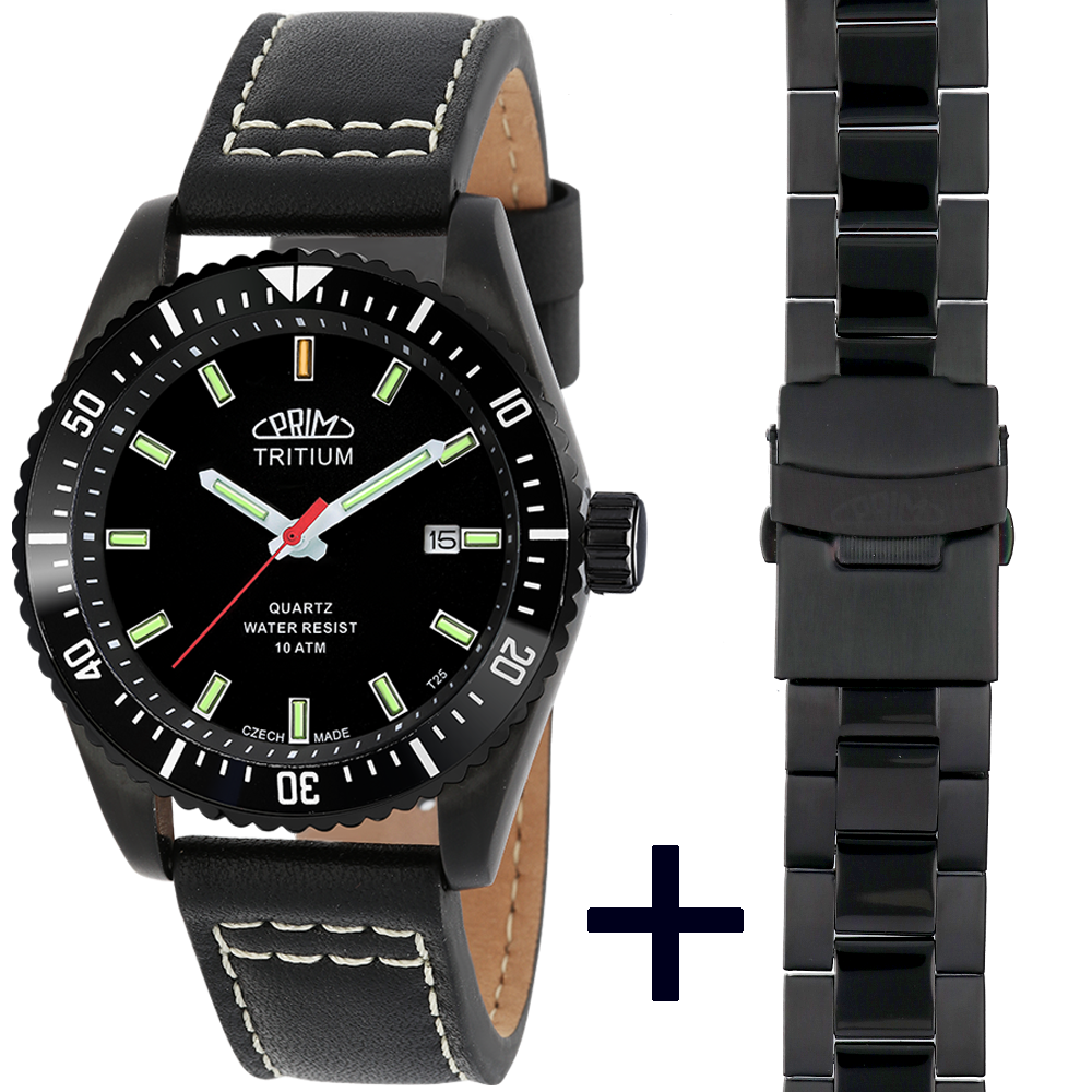 Připravili jsme si pro vás speciální kolekci 100 kusů hodinek PRIM Sport Tritium. Sportovní pánské hodinky s číselníkem osazeným speciálními kapilárami plněnými tritiem vyrobenými ve Švýcarsku, které jsou umístěny v indexech a ručičkách.