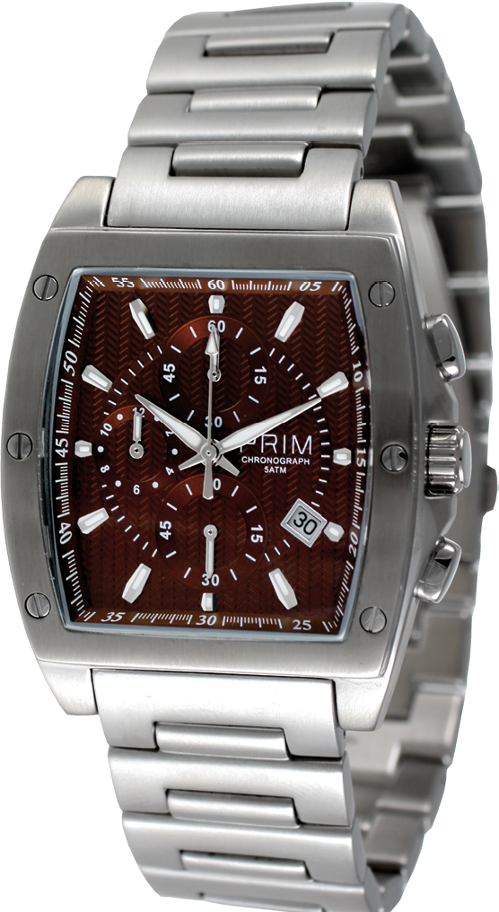 Moderní obdélníkové multifunkční hodinky PRIM s chronografem se sportovním nádechem. Hodinky jsou ale také vhodné jako pánský doplněk ke společenským akcím.