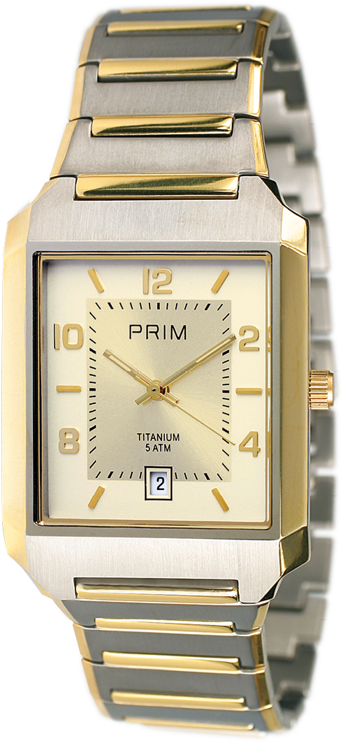 Elegantní nízké společenské pánské hodinky v zlaceném a matném titanu.