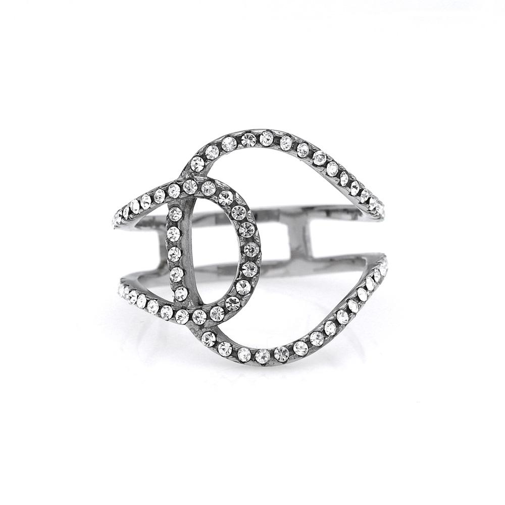 Stylový a elegantní prsten z chirurgické oceli. Moderní a jedinečné propletení s zirkony zaujme na každé dámské ruce.