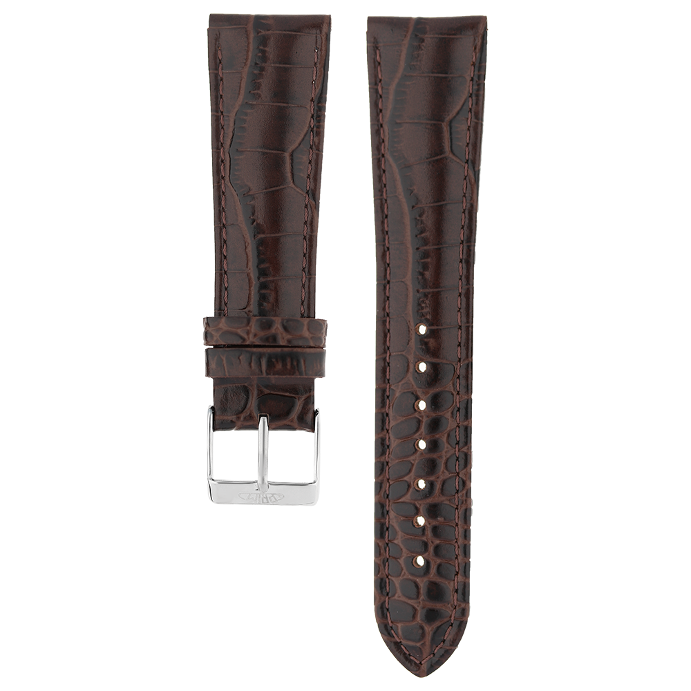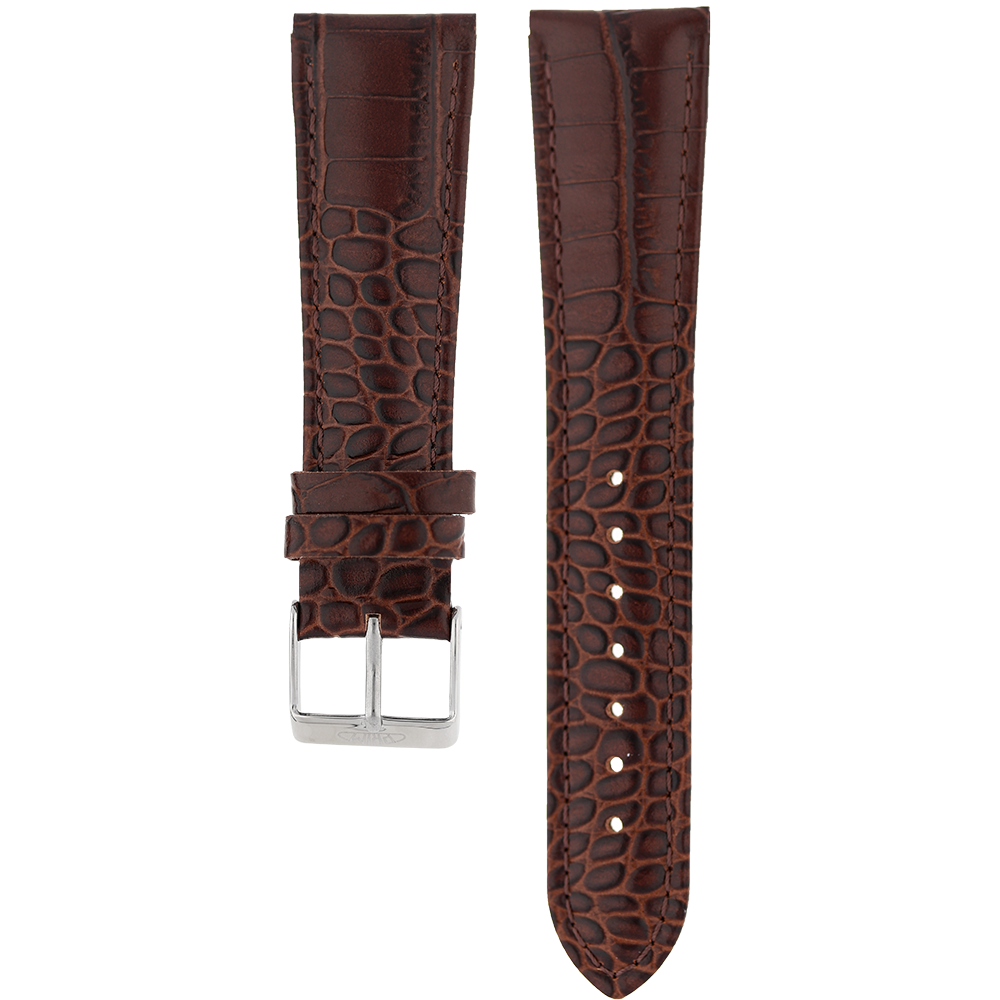 Originální kožený řemínek v hnědé barvě se vzorem krokodýla.